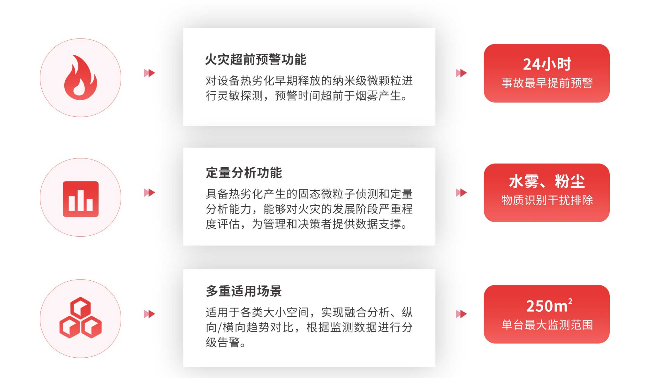 主動式安全監測預警系統含預警裝置及后臺軟件,系統融合納米微粒子特征氣體探測及主動式吸氣探測技術,能對運行環境、電氣設備(包括材料、電纜、接頭)過熱或放電等安全隱患進行在線監測、診斷、預警,有效提升過熱隱患防控能力及智能化監測水平。